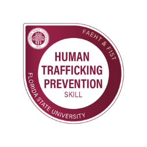 "Every year, millions of men, women, and children are trafficked worldwide. And Florida ranks 3rd among all states for reported human trafficking cases. In collaboration with the Florida Forensic Institute for Research, Security, and Tactics, the Florida Alliance to End Human Trafficking developed a one-hour training course that focuses on detecting human trafficking, best practices for reporting human trafficking, and the interventions and treatment for survivors of human trafficking. This badge will be awarded to all students who complete this training and is designed to help you identify the signs of human trafficking and know how to respond."
